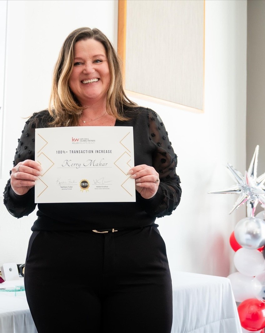 In 2025, Kerry Mahar ranked among the Top 20% of agents at Keller Williams Cape Cod & Colonial Partners, reflecting her commitment to delivering exceptional service and results for buyers and sellers throughout the region.