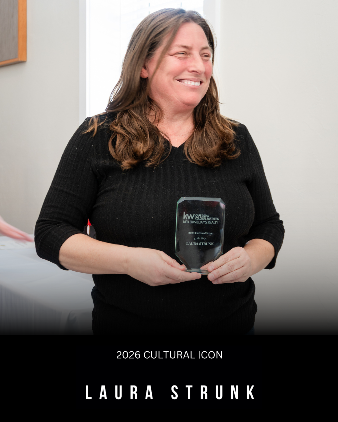 Earlier this year, Laura was honored with the Keller Williams Cape Cod & Colonial Partners Cultural Icon Award, a recognition given to professionals who exemplify leadership, collaboration, and commitment to the values that define the Keller Williams community.