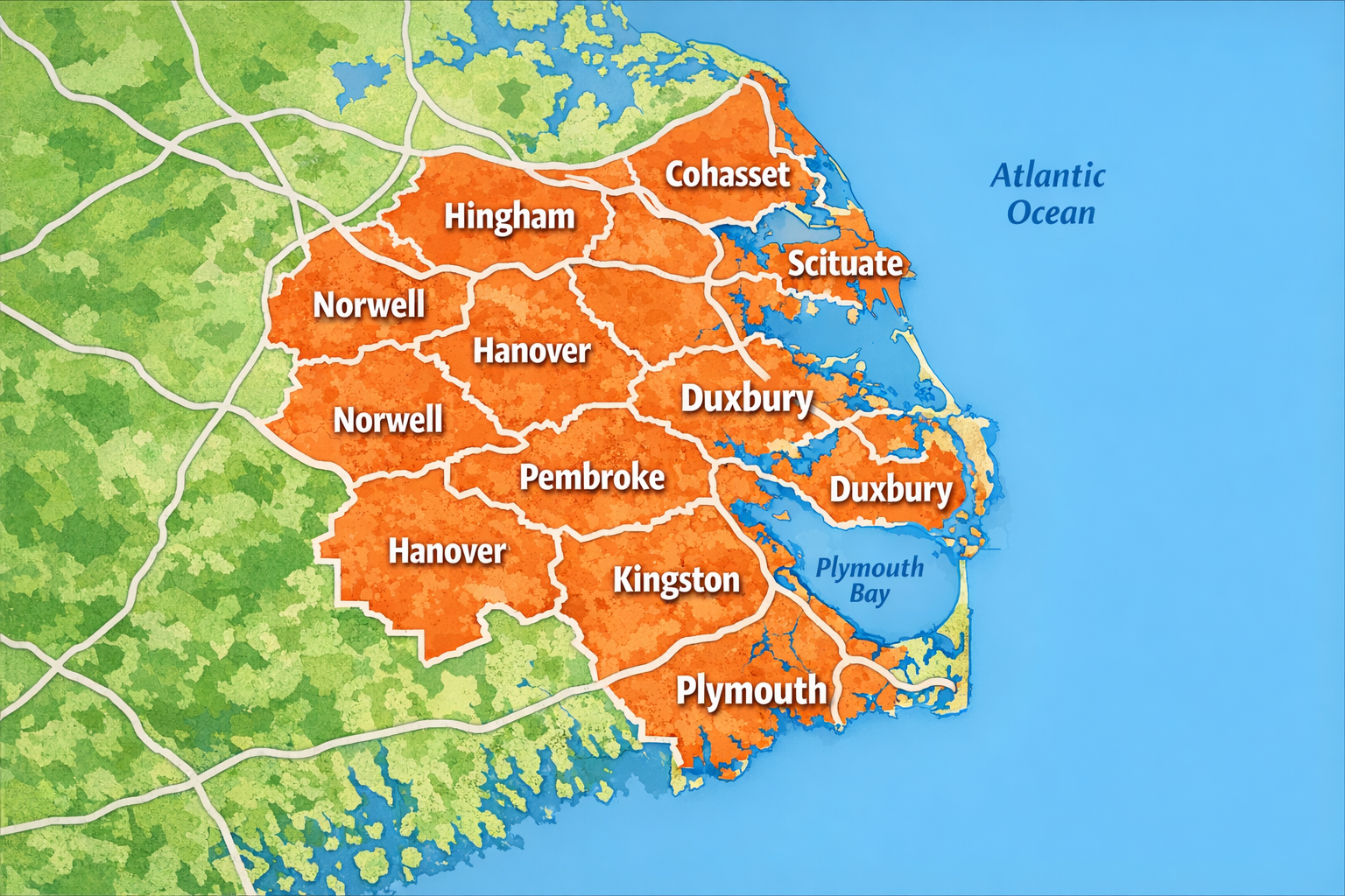 In addition to Cape Cod, Laura also assists clients buying and selling homes throughout the South Shore of Massachusetts, including communities such as those highlighted in the map below:.png)